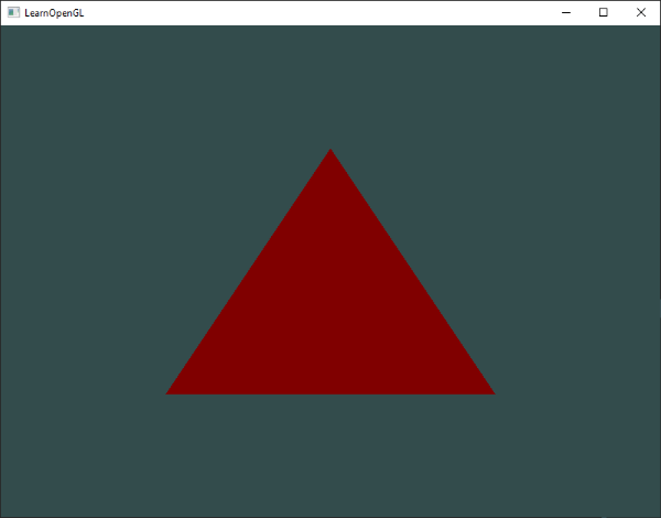 보시다시피, 정점 셰이더에서 설정하는 vec4 출력 변수인 vertexColor를 선언했고, 프래그먼트 셰이더에서도 유사하게 vertexColor 입력 변수를 선언했습니다. 두 변수의 타입과 이름이 같기 때문에 프래그먼트 셰이더의 vertexColor는 정점 셰이더의 vertexColor와 연결됩니다. 정점 셰이더에서 색상을 진한 빨간색으로 설정했으므로, 결과 프래그먼트도 진한 빨간색이 되어야 합니다. 다음 이미지는 그 결과를 보여줍니다.