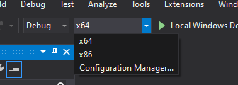 먼저 Visual Studio를 열고 새 프로젝트를 생성합니다. 여러 옵션이 표시되면 C++를 선택하고 빈 프로젝트(Empty Project)를 선택합니다(프로젝트 이름을 약간 재미있게 지어보세요). 모든 작업을 64비트 환경에서 수행할 예정인데 프로젝트가 기본적으로 32비트로 설정되어 있으므로, 상단의 디버그 옆 드롭다운 메뉴에서 x86을 x64로 변경해야 합니다.